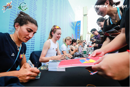 赛事落幕,车队成员再度现身主会场,在又一个激动人心的环节里,与完成挑战的车友们热烈互动——阵阵欢呼中,车手们忙着签名、合影,还分享专业骑行心得,用世界顶级的职业风采为本次TREK100画上闪耀句点,也让广大骑行爱好者两度零距离感受了世巡赛顶级车队的独特魅力。